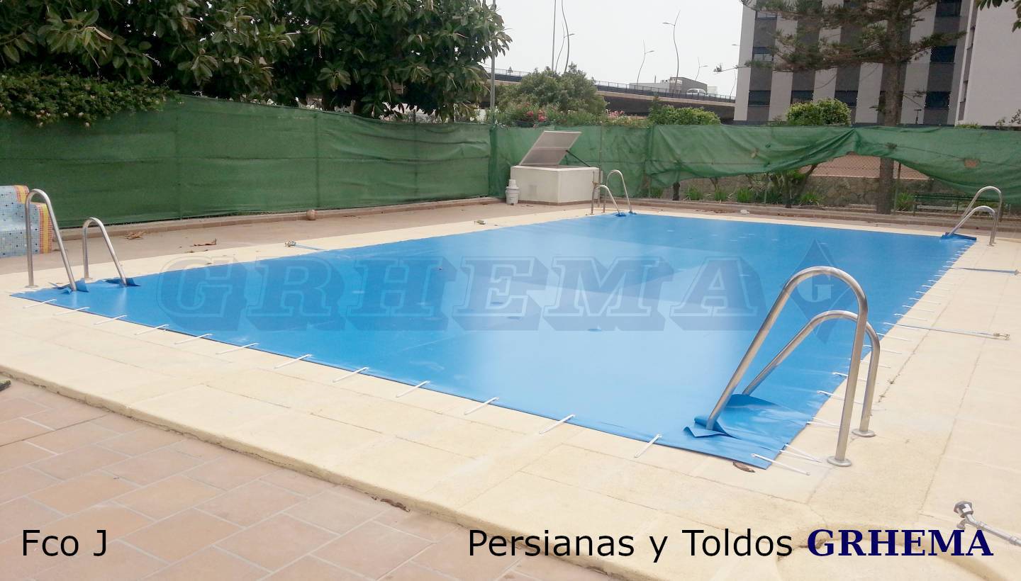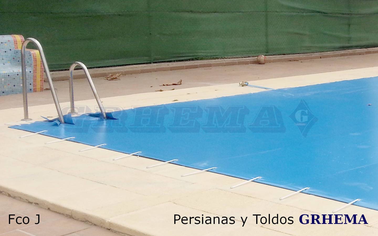 • Lona de PVC opaca para proteger la piscina de los rayos ultravioletas, impidiendo el paso de suciedad, insectos y ahorro de agua.