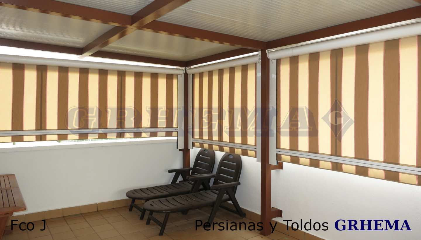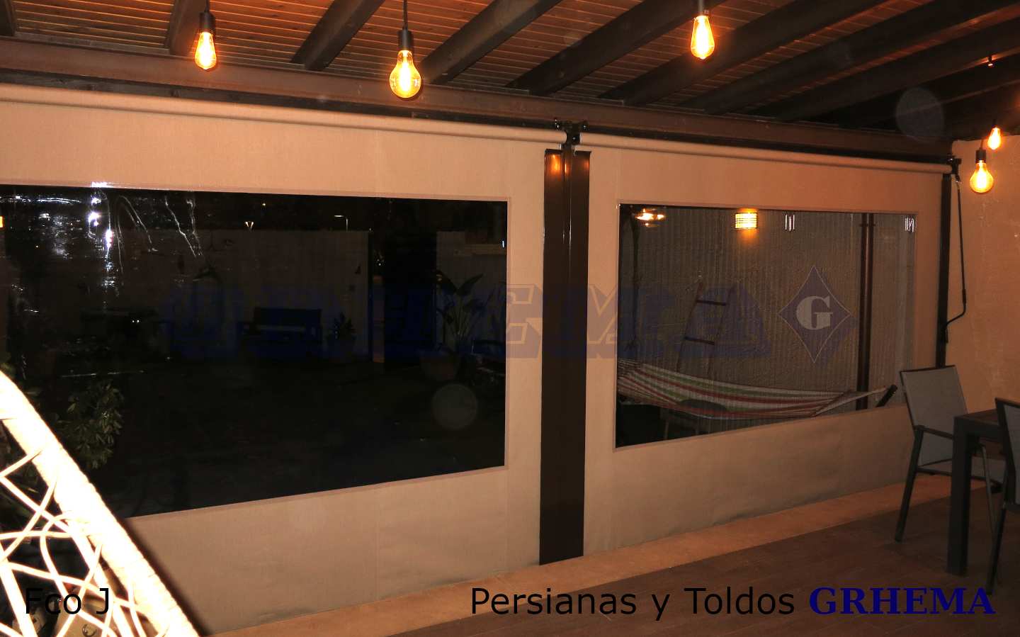 • Cerramiento frontal o lateral con toldo quitavientos guiado a través de perfiles de aluminio.