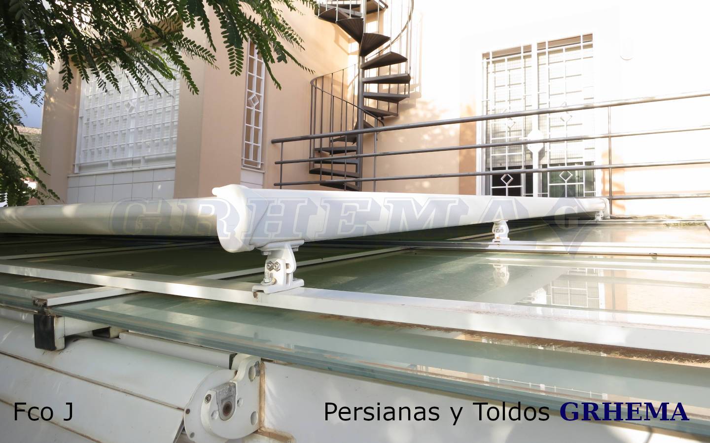 • Toldo enrollable extensible horizontal con inclinación de 90º a 45º.